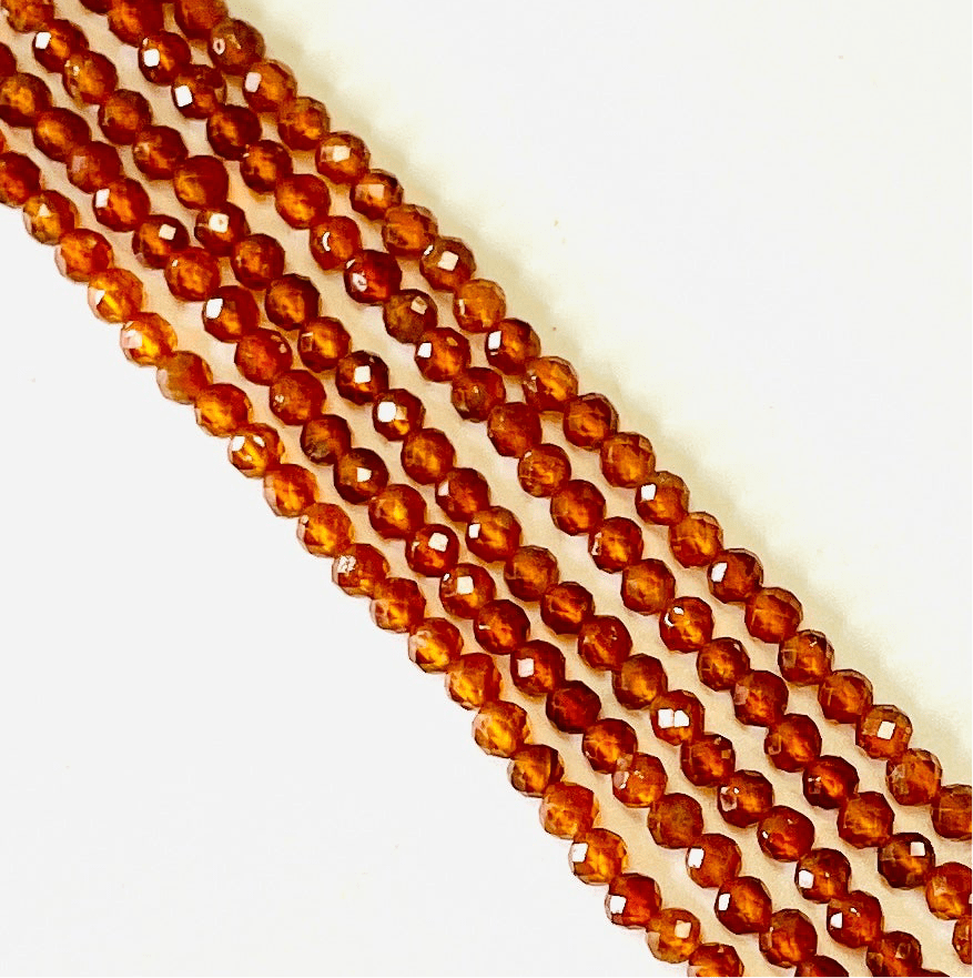 Authentic Orange Garnet Crystal Faceted Round Gemstones Beads 3mm -15.5" Strand