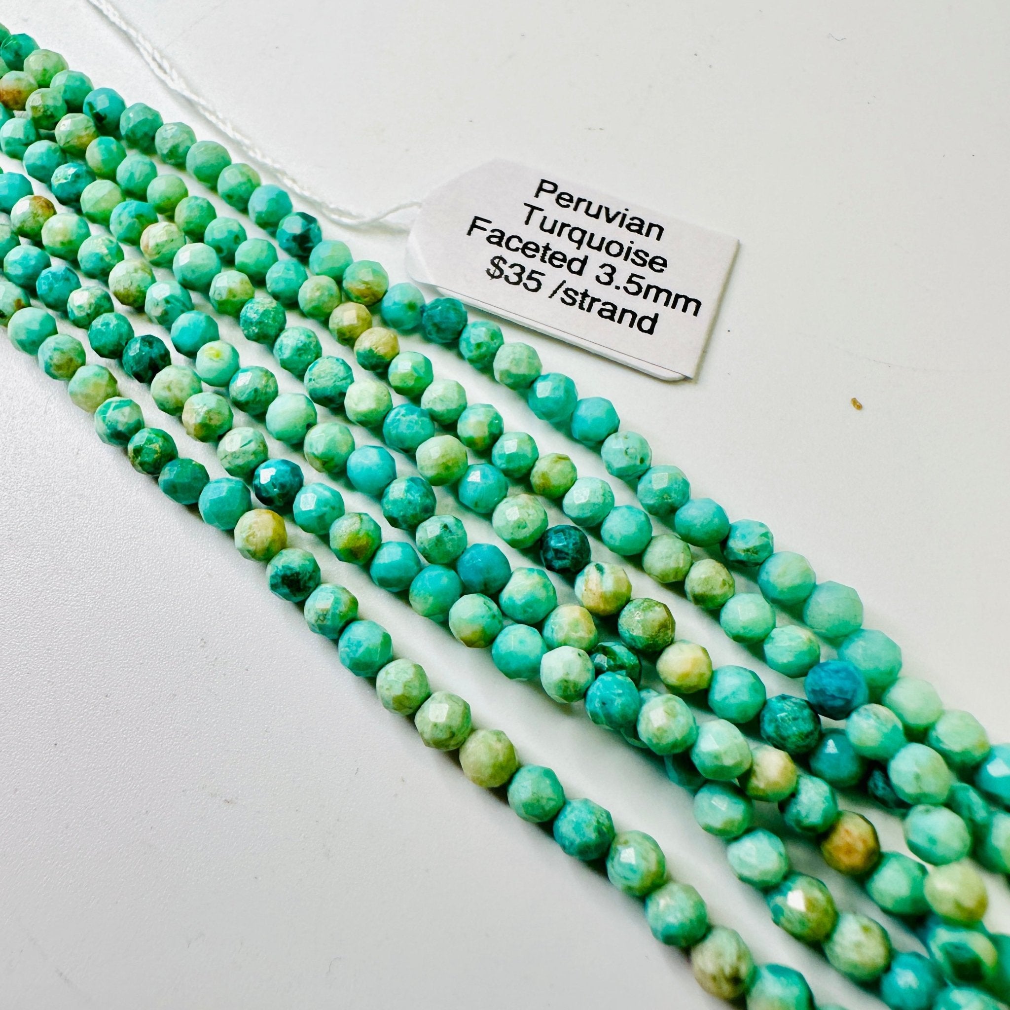 Authentic RARE! Peruvian Turquoise Gemstones Beads Round Faceted 3.5 mm -15.5 inches strand