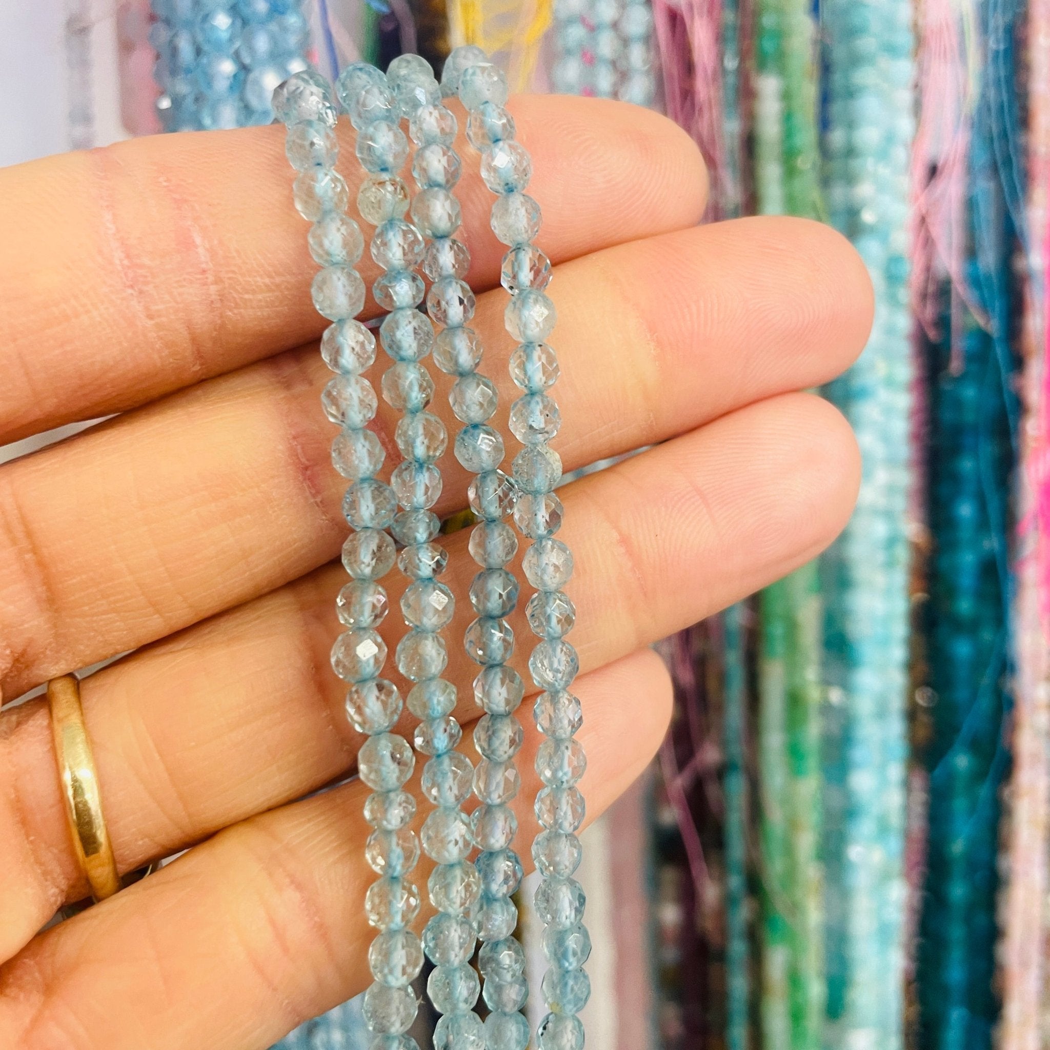 Authentic Blue Topaz Crystal Faceted Round Gemstone Beads 4mm – 15.5″ Strand