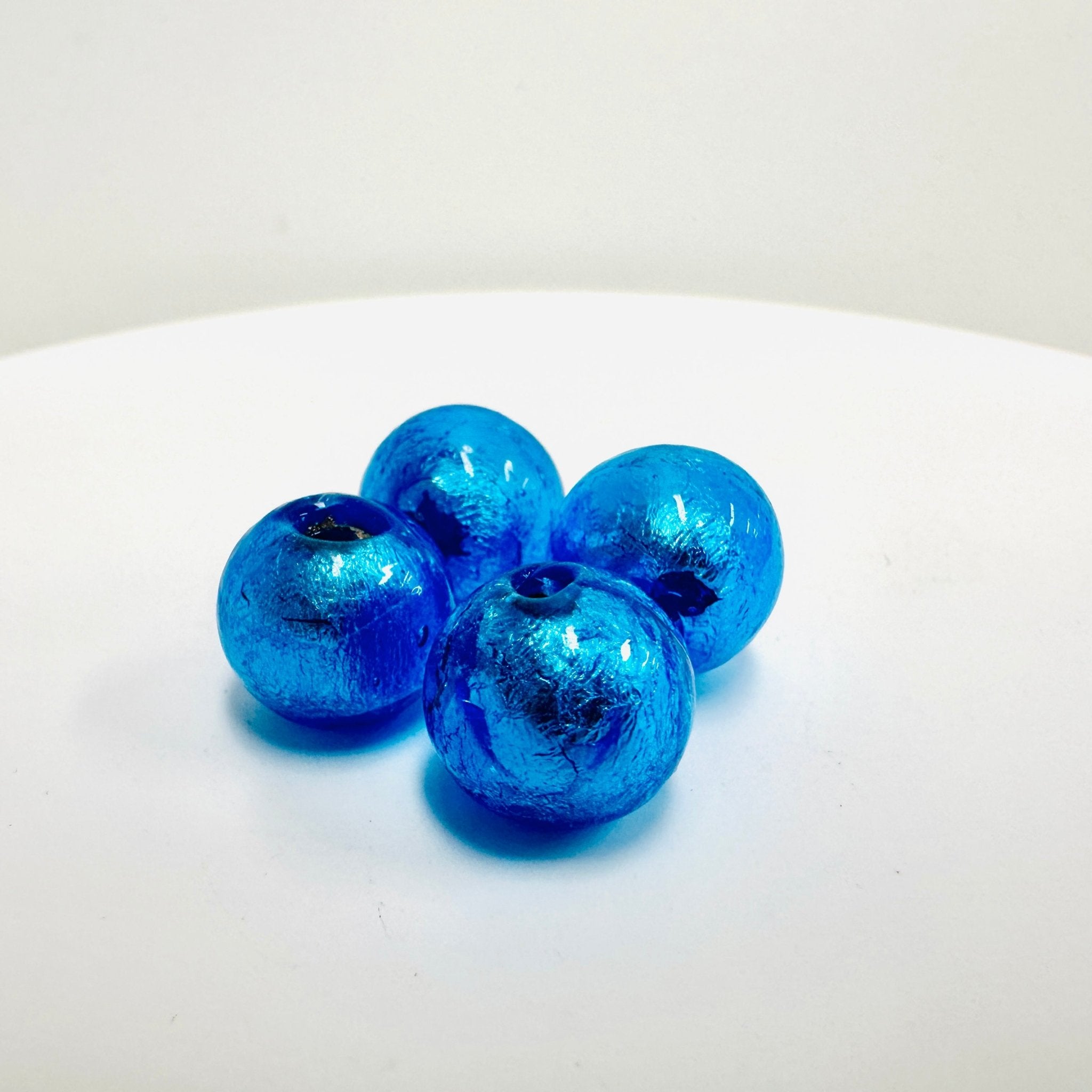 Handmade Glass Silver Foil Round Beads 12mm Blue / 4pcs