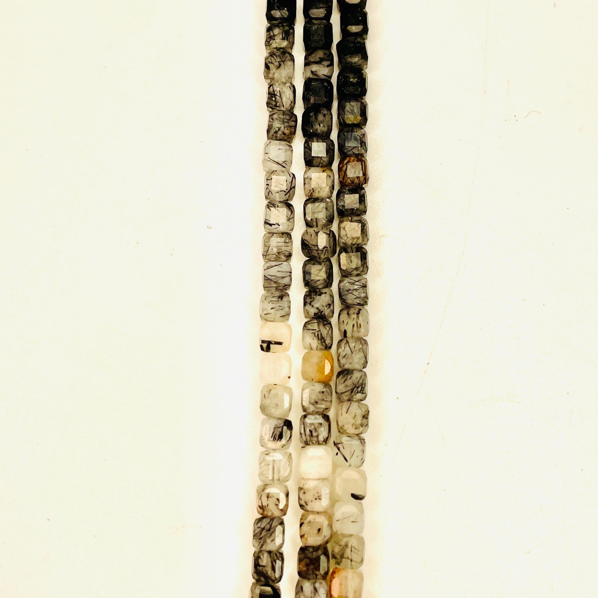 Black Rutilated Quartz Crystal Faceted Beads Cube 4mm- 15.5in Strand