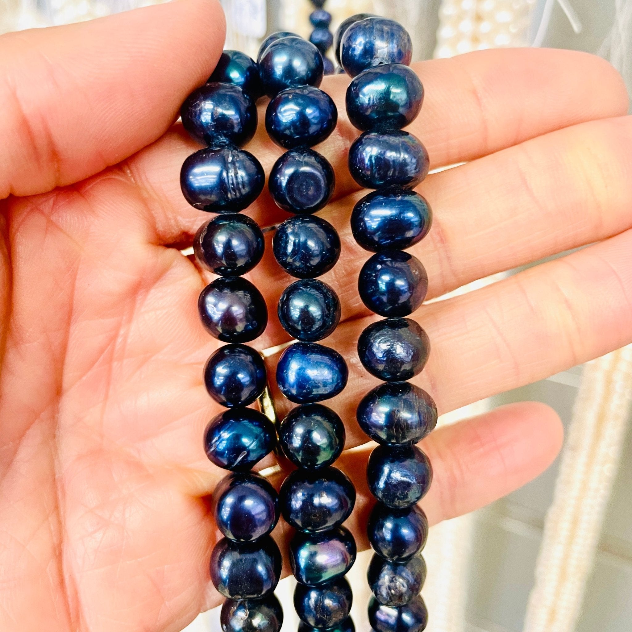 Natural Freshwater Pearls Potato Beads Dark Blue 9-10 mm -15.5"inches Strand